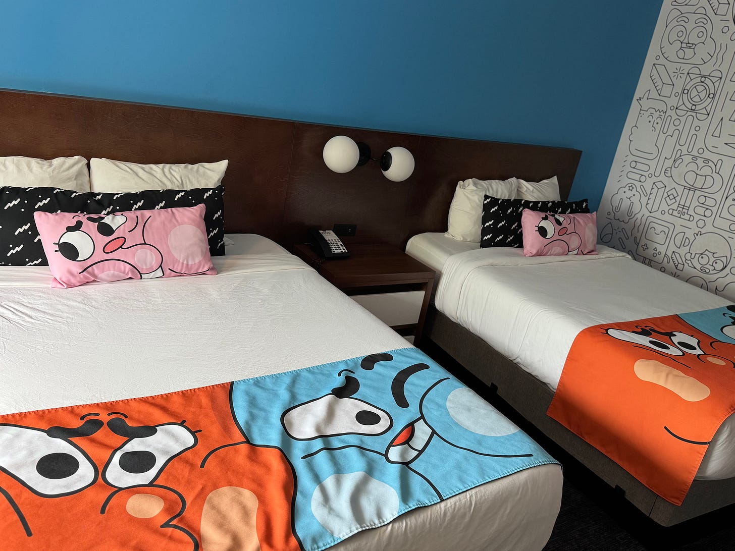 I’m going to keep it real: the rooms weren’t luxurious. They had more of an upgraded motel feel than a hotel. I totally get why some folks would raise an eyebrow, especially considering the price (we’ll get into that in a minute). But honestly? I still thought the room was cute, colorful, and perfectly fine for a kid-focused trip.