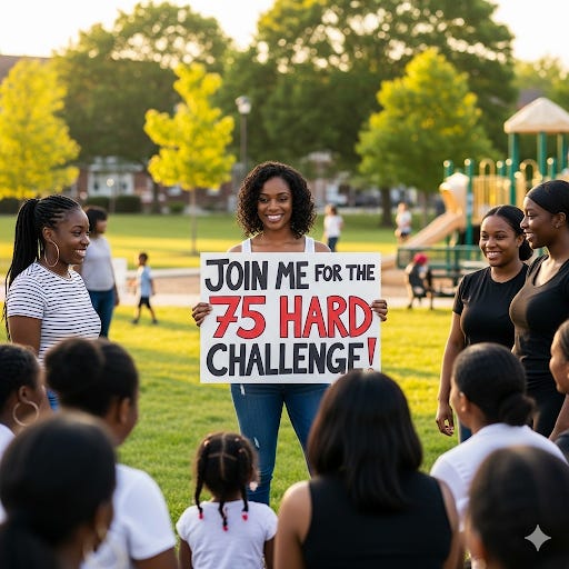 Soooo the original 75 Hard Challenge was clearly made for folks with personal chefs, live-in nannies, and 27 hours in their day. Two workouts a day? A gallon of water? Reading non-fiction and taking progress pics every day? Chiiiilleeee. As a solo mom, just getting my child out the door without losing my mind is a challenge on its own.