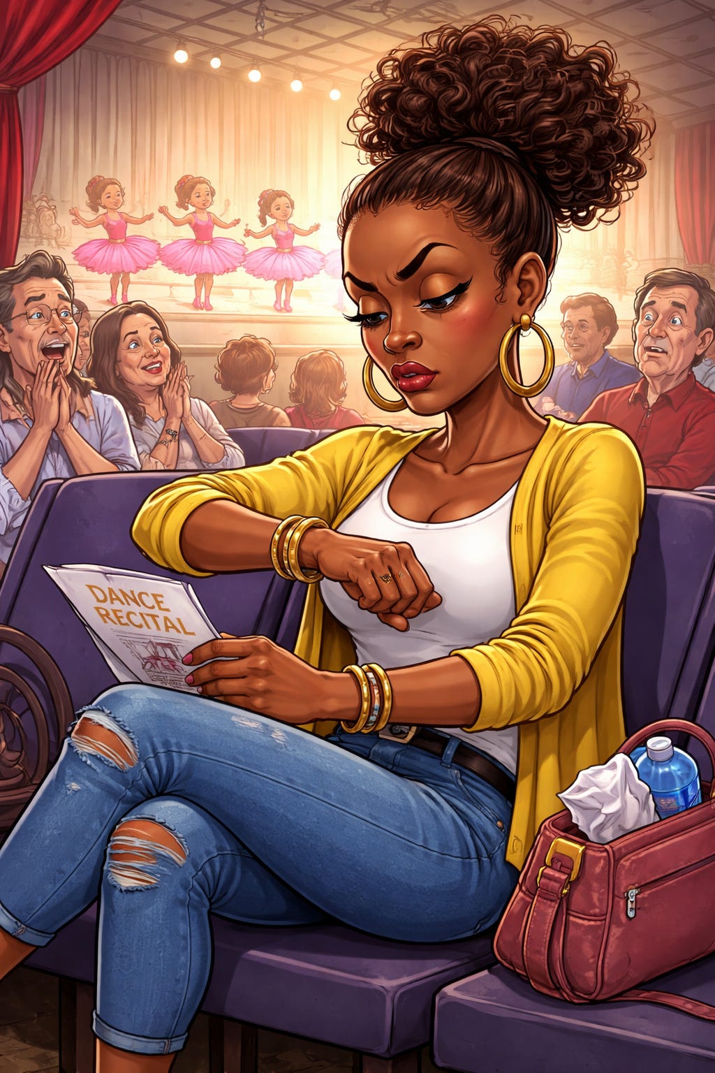 Hair done. Outfit coordinated. Nails fresh. She walked into the school event like she might accidentally run into someone important.